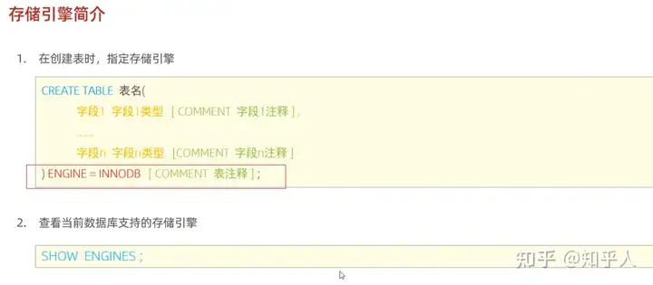 1 | 1. 存储引擎是基于表的,一个数据库下的不同表,可以有不同的存储引擎 |