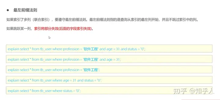 索引失效的几种情况: